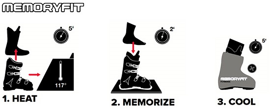 Memory Fit je jednou z nejrychlejších technologií tvarování lyžařských bot na trhu. Rozehřátí skeletu a komínu boty na teplotu potřebnou pro tvarování trvá pouze pět minut, celkový proces včetně tvarování vnitřní botičky pak nezabere víc než 12 minut! Ve speciální troubě se skelety bot nahřejí bez vnitřní botičky na teplotu 117 °C, vnitřní botička se naopak nenahřívá a je technologicky připravena k tomu, aby po vsunutí do rozehřátého skeletu absorbovala teplo z něj a tvarovala se tak na noze současně s ochlazujícím se skeletem. Dochází tedy k přizpůsobení botičky i skeletu zároveň, což je na trhu zcela ojedinělé. Poté, co vstoupíte do rozehřátých bot, do kterých mezitím obsluha vsunula vnitřní botičky, zapnete velmi volně přezky a po dvou minutách „klidového režimu“ bez pohybu a chůze přichází na řadu speciální proces chlazení pomocí návleků, které vám asistent navlékne na skelety. Po dalších pěti minutách pak odcházíte z obchodu s individuálně vytvarovanými botami.