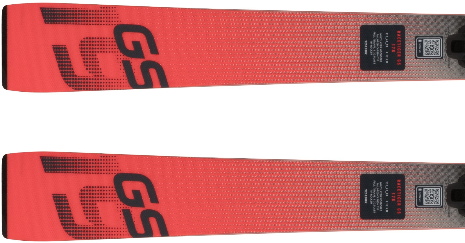 Skvělé lyže na delší oblouky na tvrdých upravených svazích. Základem je sendvičová konstrukce s vícevrstvým dřevěným jádrem Multilayer Woodcore, kdy samotné jádro je vyrobeno ze dvou druhů dřeva - tvrdší buk v oblasti hran, měkčí topol ve středu lyže. Uvedené jádro je ještě z horní i dolní strany vyztuženo titanalovým plechem. Jádro je dále doplněno novou technologií 3D.GLASS, která lyži dělá hravější. Model Racetiger GS má lehce přizvednutou špičku Tip Rocker pro snazší ovládání při nájezdu do oblouku. Rychlost skluzu, a tím i lyží, zajišťuje použití vysokomolekulární závodní skluznice P-Tex 4504, spolu s úpravou bočnic Full Sidewall.